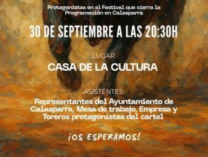 Este martes, 30 de septiembre, a las 20:30 horas, en la Casa de la Cultura: «Encuentro con los Toreros Murcianos» Grandes Protagonistas del Festival anunciado para el sabado 11 de octubre.