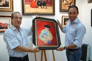 MURCIA. Miércoles, 21 Septiembre 2011. Por PEPE CASTILLO ABREU. El pintor murciano Francisco Muñoz Molina ha entregado dos retratos al Maestro Pepín Líria,en la pedanía murciana de Zarandona. En el primero de los óleos aparece Líriaen plena faena en laReal Maestranza de Sevilla. Mientras que el segundo se trata de un primer planode Líria liado en un capote de paseo. Por lo que refleja el rostro de Pepín Líria en la foto, es evidente, recibió con agrado y gratitud las dos obras a él dedicadas.